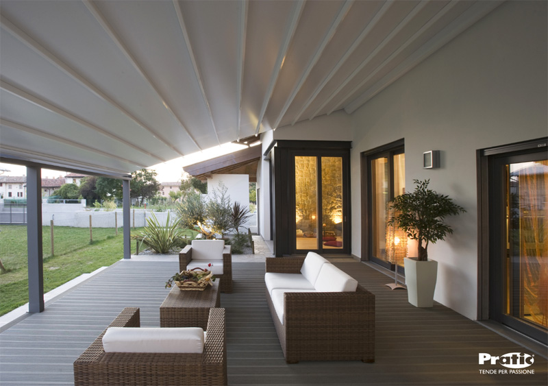 Nata dalla collaborazione tra Pratic e Subissati è il pergolato con protezione solare Tecnic integrata alla struttura in legno.